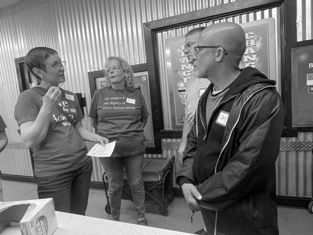 The group spreads the word through posters, placing them in areas where unhoused individuals gather, such as lunch lines, outreach centers, and other community aid locations.