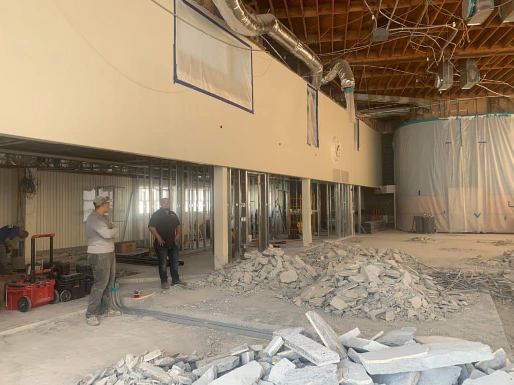 When the renovation is complete, the exterior will change just slightly. Plans call for the walls to be painted tan instead of white to match the building’s original paint more closely. There will also be an ATM screen installed outside.