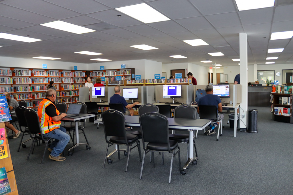All library services continue at the new location, including computer and Wi-Fi access, printing, passport acceptance services, the Friends of the Library bookstore, story time, teen programming and adult programming.