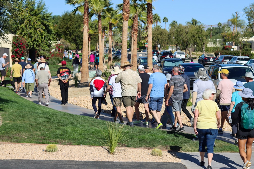 Nearly 100 people walked a mile through Palm Springs on Sunday to honor Ricardo Marano, the 56-year-old pedestrian known affectionately as “The Walking Man,” who was killed in a hit-and-run crash Jan. 18.