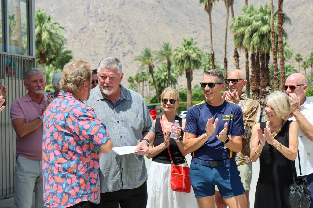 René Bernard, treasurer of the Palm Springs Sun Up Rotary Club, said his organization decided to contribute after deHarte spoke to members about the fundraising effort. “We thought what a great time for us to help our community, which we support in many ways,” Bernard said.