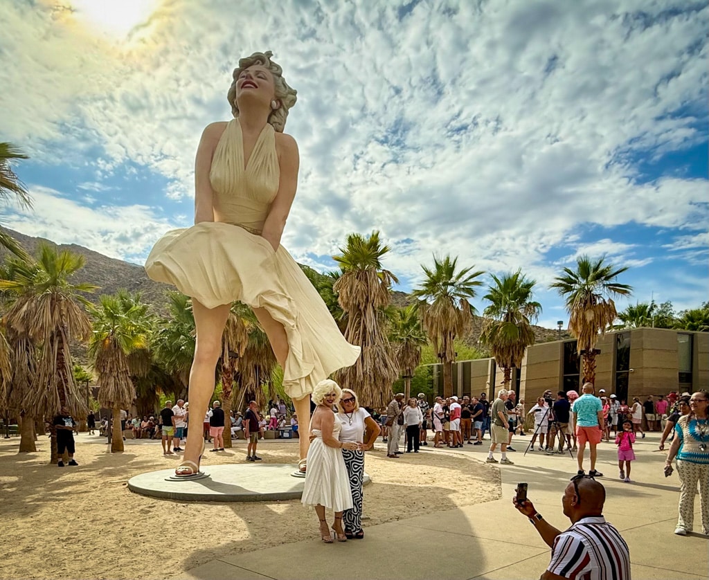 A crowd gathers at the “Forever Marilyn” statue in Downtown Park during a 99th birthday celebration for the late actress in 2025. (File photo)